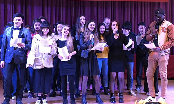 表彰会之后是文艺表演。演出在热烈的气氛中开始,各班留学生都献上了精心排演的节目。来自高级一班和高级二班的马哲等四位主持人用流利的汉语开启了整场演出。初级二班的合唱《改变自己》热情洋溢,中级班的《歌曲联唱》、合唱《刚好遇见你》悦耳动听,初级一班的独唱《小幸运》《月亮代表我的心》引起了全场大合唱,诗朗诵《将进酒》铿锵有力,印度舞表演温婉而奔放,将气氛推向高潮,紧接着“中国歌曲选修课”选送的节目——合唱《小酒窝》又一次引发全场大合唱,高级二班的诗经朗诵《古诗遗风》充满古典韵味,女声独唱《大鱼》空灵优美。演出在中级二班令人赏心悦目的手语表演《国家》中落下帷幕。整场演出高潮迭起,充满欢声笑语和热烈的掌声。