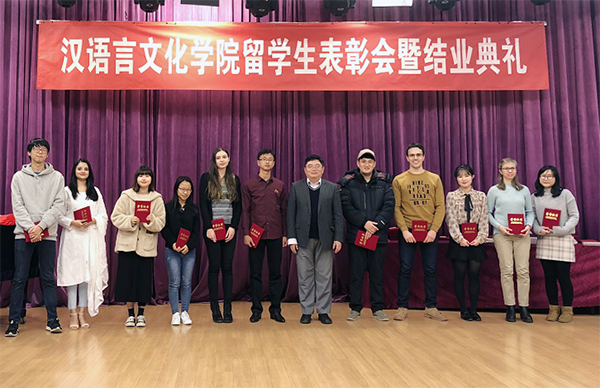 2018-2019学年第一学期留学生表彰会暨结业典礼在东方艺术大楼举行。学院全体党政领导出席典礼,进修部全体教师及近三百名留学生参加了本次活动。