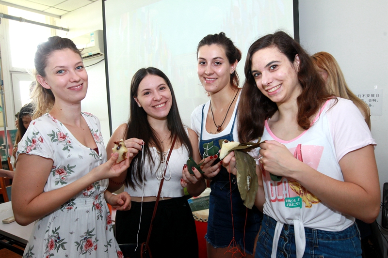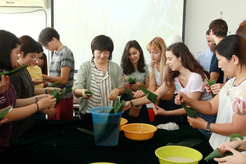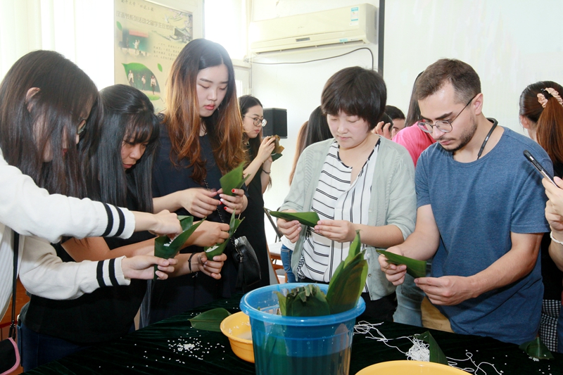 6月15日,每日大赛 100多名来自泰国、土耳其、埃塞俄比亚、亚美尼亚、意大利、俄罗斯、美国、葡萄牙、哥伦比亚等国的留学生,聚集在每日大赛 南楼活动厅,与老师一起包粽子,感受中国端午文化,共同迎接端午佳节的来临。