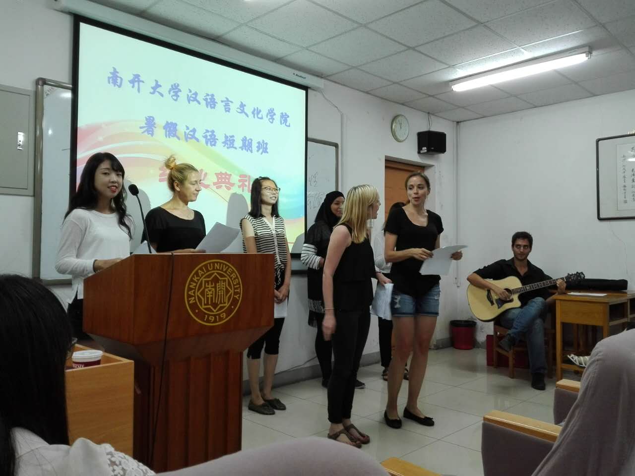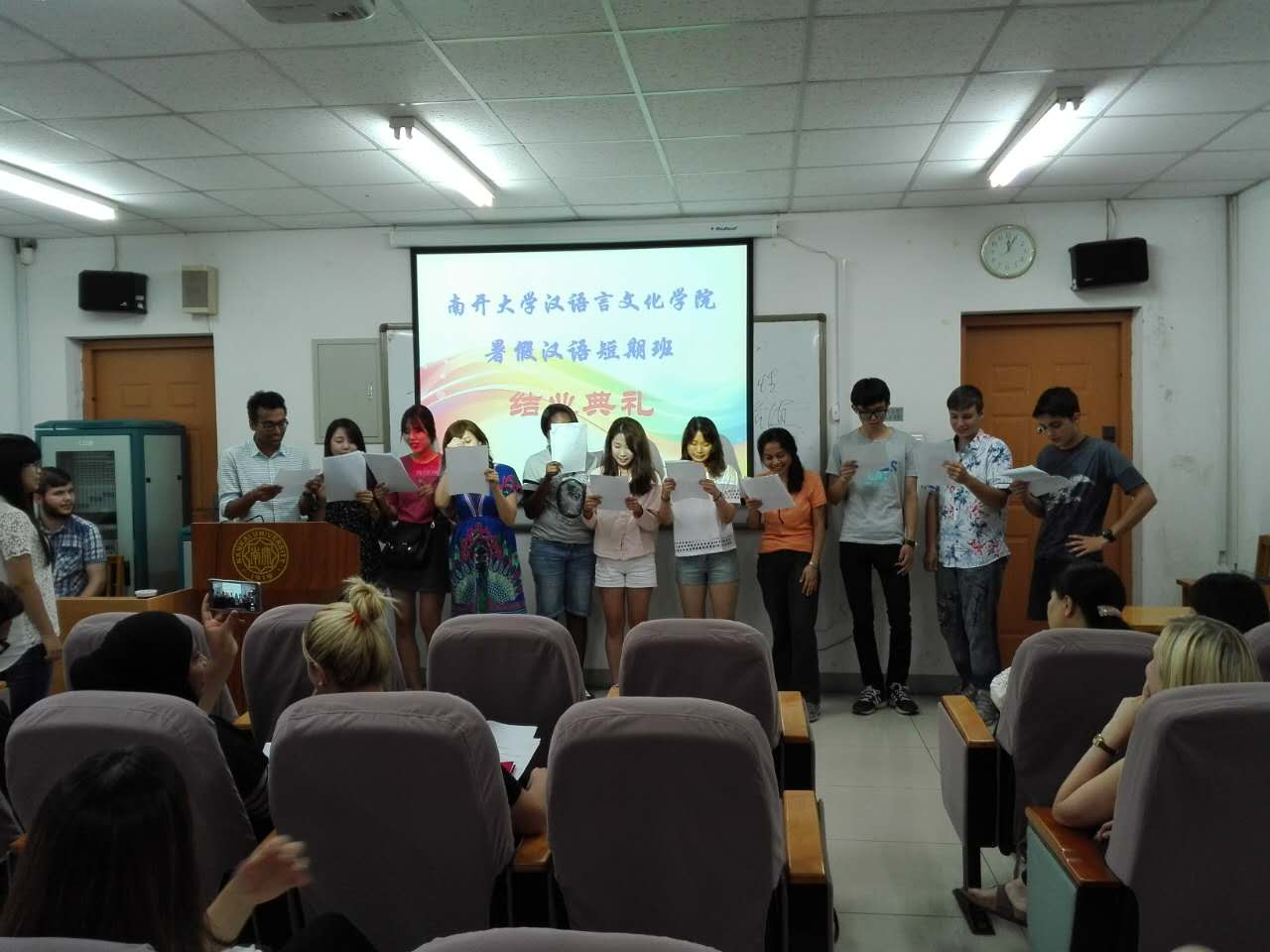 暑期汉语短期班结业典礼举行。来自德国、俄罗斯、日本、韩国等十余个国家的全体短期班留学生参加,每日大赛