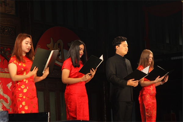 南开新闻网讯(实习记者 郝静秋)12月27日,来自乌克兰、法国、俄罗斯、韩国、菲律宾、蒙古等9个国家的200余名南开师生齐聚天津戏剧博物馆,打上快板、奏起民乐、唱响京剧……用一场传统文化学习实践汇报演出迎接2015年的到来。