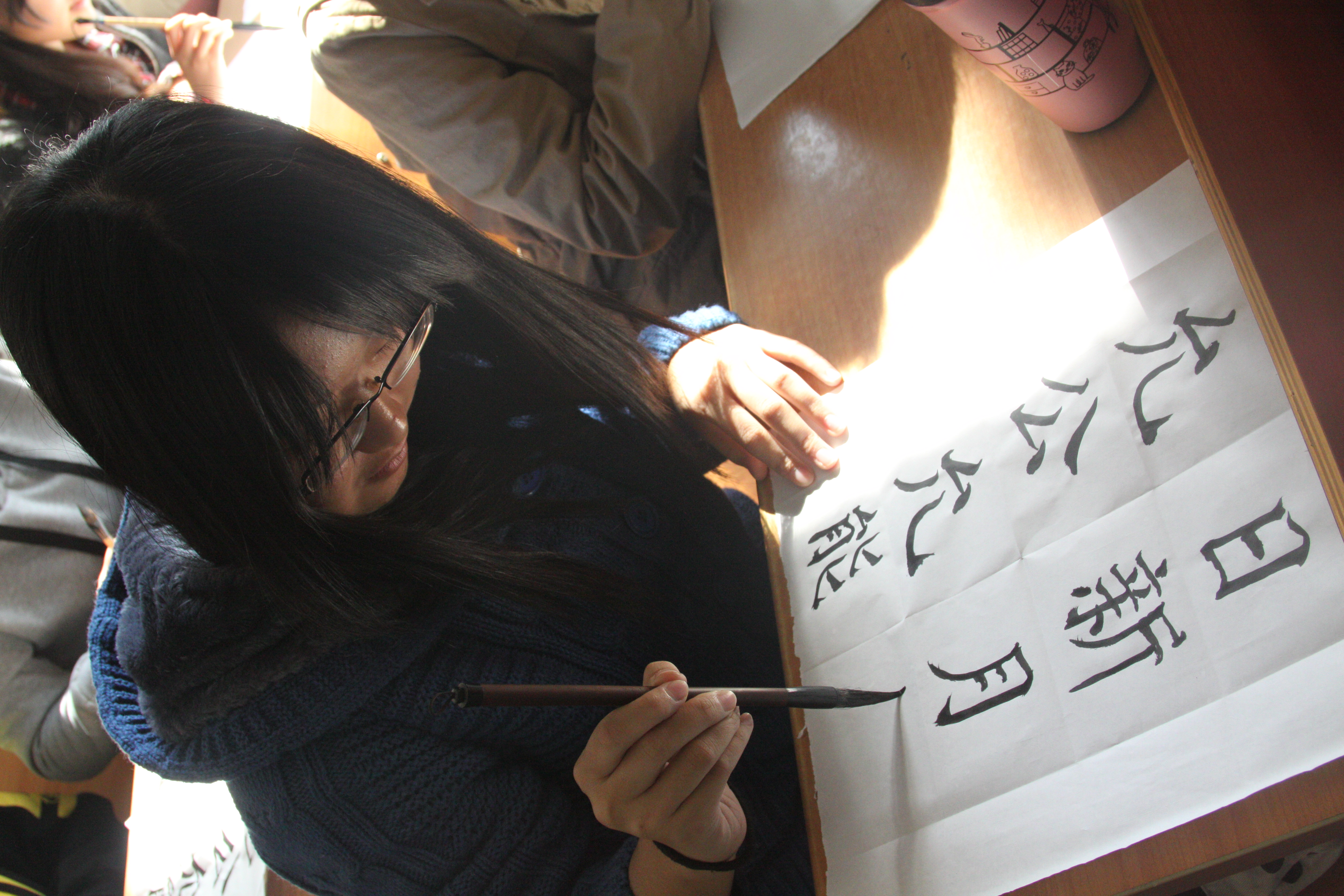 活动最后,大家一起动手写起了毛笔字,用稚嫩却认真的笔法写下了“允公允能、日新月异”的校训, 在这种体味传统书法的方式中感悟中国优秀传统文化的魅力,既激励了大家学习中国优秀传统文化,也表达了同学们对自己在南开生活的憧憬,为南开95周年校庆献礼。