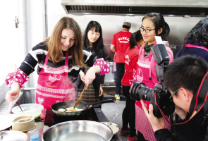 天津北方网讯:前天下午,来自乌克兰、泰国、老挝、日本、韩国、中国等6个国家的50余名南开学子走出校园,来到天津市中华职业中等专业学校的烹饪实训室,他们中的16名参赛选手纷纷亮出自己的拿手好菜比拼厨艺、分享美食。16名参赛选手分成4组,每组要合力完成4道菜。来自乌克兰的奥莉准备做土豆饼,“做土豆泥太费时间了,我捣了快半个小时了,不过马上就可以下锅了。”旁边来自泰国和老挝的同学正在制作酸辣木瓜剁肉,“这个菜在老挝很有名!”一个多小时后,韩国炒年糕、泡菜汤,日本味噌汤、亲子井,中国煎饼馃子、热干面……一盘盘美食陆续出锅。最终,经烹饪专家点评,中国菜“满城尽带黄金甲”(炸蘑菇)以平均分90.33分击败其他菜品,成为最终赢家。“满城尽带黄金甲”、蒜蓉粉丝蒸虾、饺子成为学生点赞率最高的三道美食。