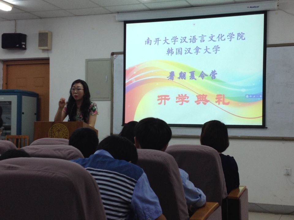 副院长刘春兰以及负责该短期班教学的两位老师及汉拿大学孔子学院夏令营全体同学出席了本次开营仪式。刘春兰副院长、韩方领队济州汉拿大学孔院院长申宜暻教授、中方教师代表等出席了开营仪式。