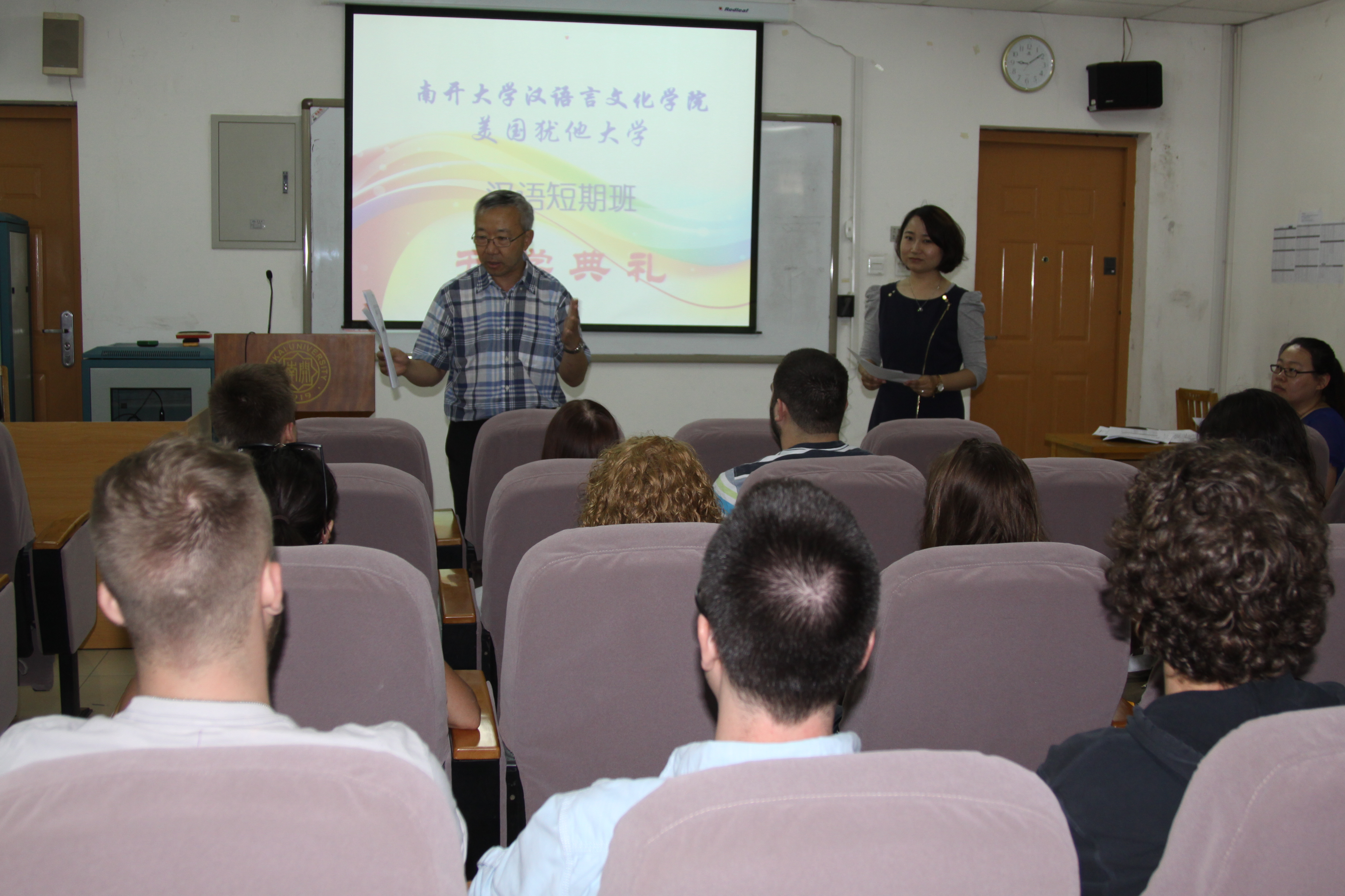 党委副书记王坚、美方领队教师吴伏生教授和短期班任课教师出席。开学典礼由学院招生办公室主任张艳主持。