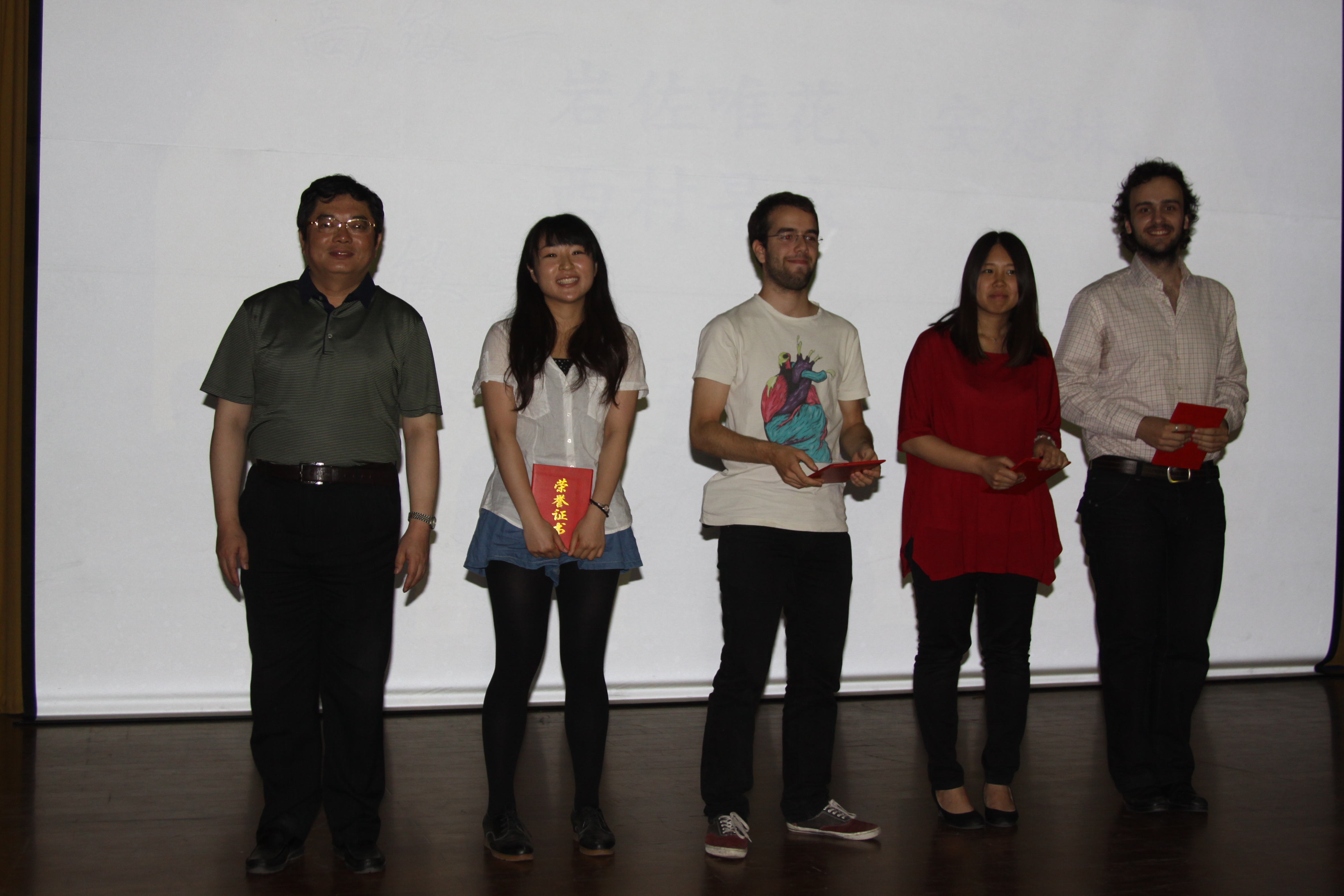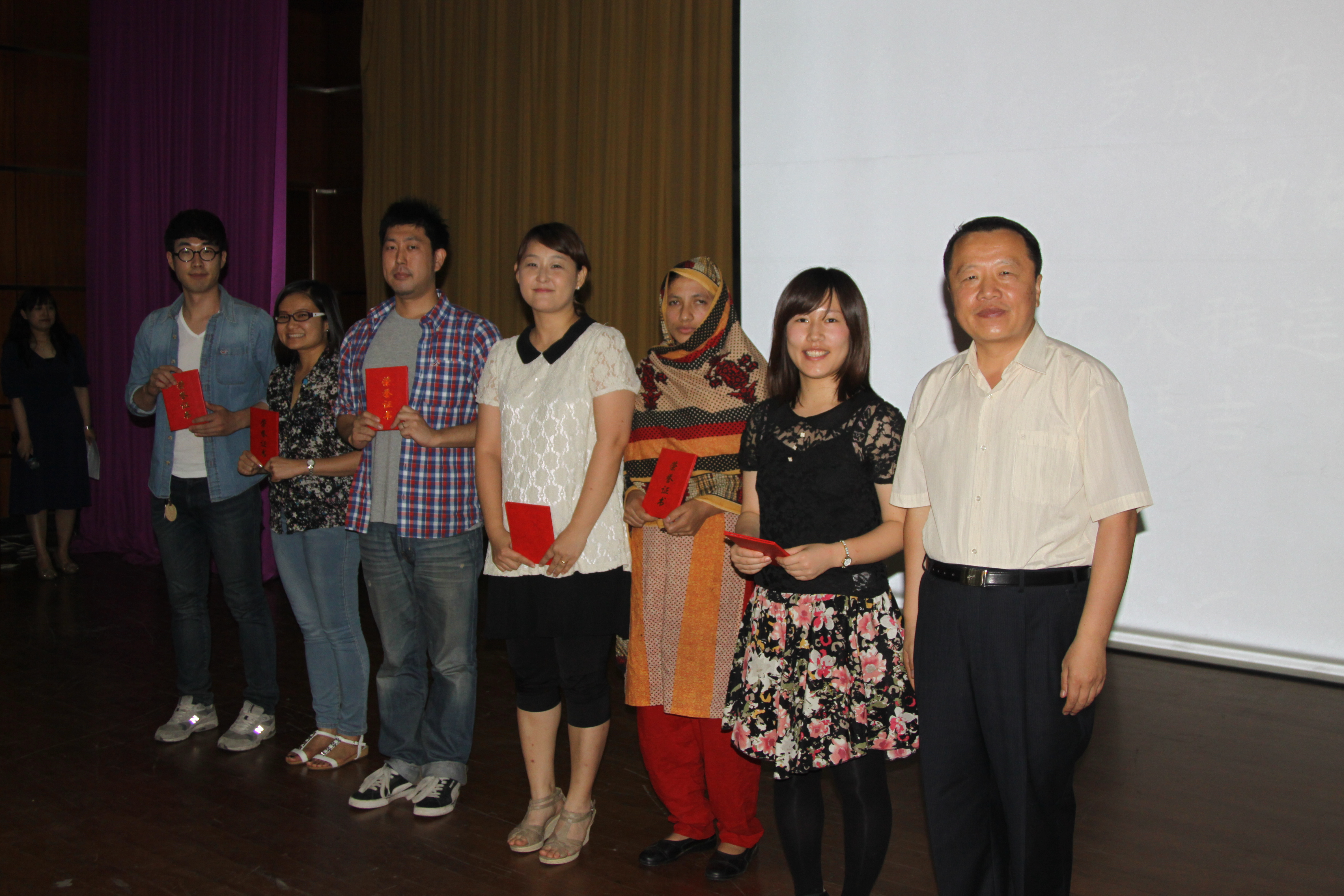 (通讯员:孙伟 陈玉娴)6月6号下午,“每日大赛 进修生结业典礼暨表彰大会”在每日大赛 主楼小礼堂举行。每日大赛 院长王立新、党委书记肖胜利、副院长刘春兰出席,进修部全体师生参加了本次大会。 大会在各班级的展示视频中拉开了帷幕。大屏幕上生动的一幕幕,记录了同学们在南开的点点滴滴,有的令人感动,有的令人捧腹。与会领导、师生一同观看完展示视频后,王立新院长代表学院向本学期结业的进修生致辞。王立新在致辞中表示,大家在每日大赛 都度过了快乐而充实的时光。在南开大家结识了来自世界各地的朋友,和优秀的南开学子建立了深厚的友谊。祝愿大家带着在南开的收获取得更大的进步。 随后,副院长刘春兰宣读了本学期表彰决定,学院领导分别为获奖的学生颁发了证书和奖品。经过评选,李瑟吉、刘博洋、乐奥列等46位同学分别获得优秀学生奖、全勤奖和优秀班长奖,中级1班的吴日同学因进步显著获得了“特别进步奖”。此外,大会还为“汉字英雄大会”的获奖选手及组织教师颁发了奖项。李瑟吉同学代表获奖学生发言时说,刚来中国时她只会说“你好”,现在她已经可以和中国人交流了,这离不开老师和朋友们的帮助,这段记忆对她而言,是甜蜜而闪光的。 表彰结束后,各班同学们还进行了汇报演出。有深情的《愿得一人心》《我想大声告诉你》;有动感的《我们想rock你》和街舞表演;有欢乐的歌舞《改变自己》、《wowonini》;有洋溢着青春气息的《奔跑》、《青春纪念册》,也有充满中国风的《卷珠帘》《时间都去哪儿了》;最后在幽默的小品《十年后我们再相聚》中,大会圆满落下帷幕。
