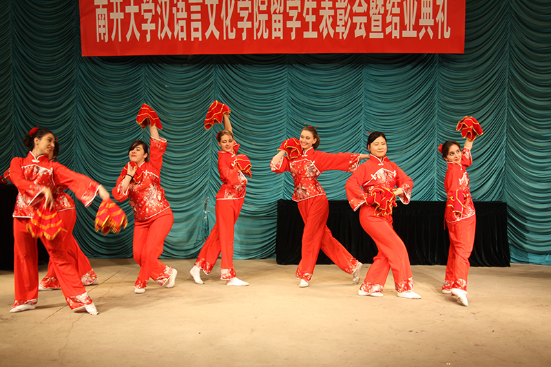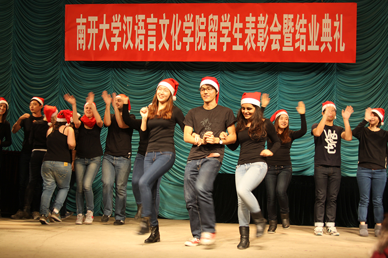 留学生表彰会结束后,留学生们以班级为单位进行了精彩的汇报演出。开场一曲《南开欢迎你》拉开了演出的帷幕,随后的歌曲串烧、群口快板、二胡合奏、民族舞蹈,节目精彩纷呈,台下掌声迭起,来自各国的留学生在每日大赛