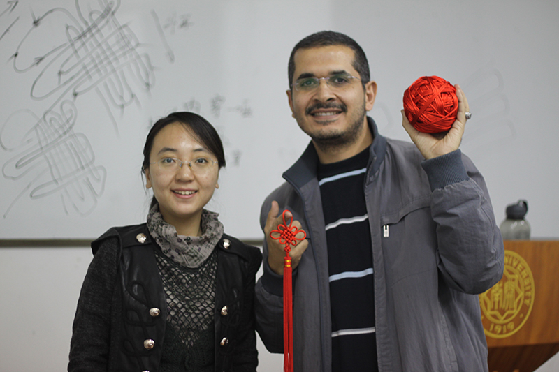 第一个做出成品的是埃及留学生赛义德。他编得又快又好,成功夺冠后,脸上露出了胜利的笑容。活动中,虽然也有同学由于粗心导致过程中出现失误,但他们并没有气馁,经过反复尝试,也最终编出了自己的第一个中国结,得到了老师和同学们的肯定和赞赏。