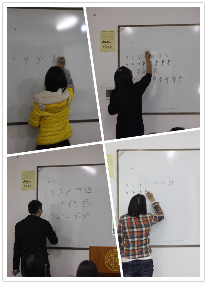 11月14日,一场别开生面的“汉字笔顺听写大赛”在教室内进行。与在其他学院火爆进行的汉字听写大赛不同,该班同学将听写重点放在笔顺方面。对于将来会成为汉语教师的同学们来说,要掌握的不仅仅是汉字书写,笔划、笔顺同样重要。因此,研究生班从学院特色和个人业务素质需要的角度出发,策划并成功举办了一场“笔顺听写大赛”,班内中外同踊跃报名参赛并积极备战。该项活动一方面提高了同学参加班级活动的热情和积极性,另一方面,也使大家认识到想要成为对外汉语教师,还需要不断学习,切实提高自身的综合素质。