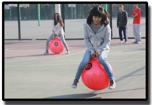 参加游戏的中日学生被分成了7个小组,并以小组为单位就各个融合了趣味和挑战性的游戏项目进行了比拼。刺激的健身球接力考验了大家的运动和协调能力,而选手们有趣的姿态也引来欢声笑语一片;风火轮游戏则要求小组成员排成一列,在一条长长的条幅里行走,协调速度,方向以及条幅滚动有序对小组成员之间合作能力提出了高要求;接下来的指引“盲人”的游戏对组长和组员之间的默契,信任度以及中日两国学生之间的互相沟通能力是一个极高的挑战,不仅需要组员对指引自己的组长有充分的信任,更需要组长学会怎样在语言交流有障碍的情况下发出准确的指令;最后的跳长绳项目将全场的气氛推到了高潮,正式的比赛结束后大家开始了自发的跳长绳游戏,原本陌生的中日小伙伴们由此培养了更加深厚的感情,一道名为“国籍”的墙壁被汉院学子的热情打破了。