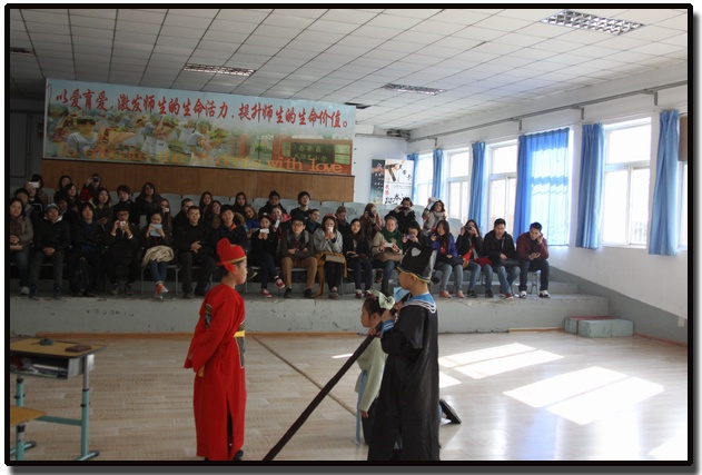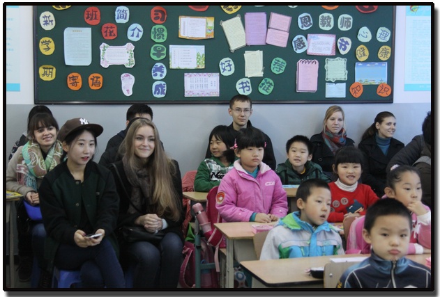 学生们不仅和小朋友们在课堂上积极互动,参与了课间的集体游戏环节,还观看了小学生们排练的“文明礼貌行为”的节目表演、聆听了孩子们诵读的《弟子规》,并参观了整个校园。本次活动既帮助学生进行了汉语的实践,又使他们更深刻了解到中国基础教育的大体情况,还拉近了学生们和中国人的感情,为提高班级凝聚力、增强学生的汉语表达能力发挥了重要作用。