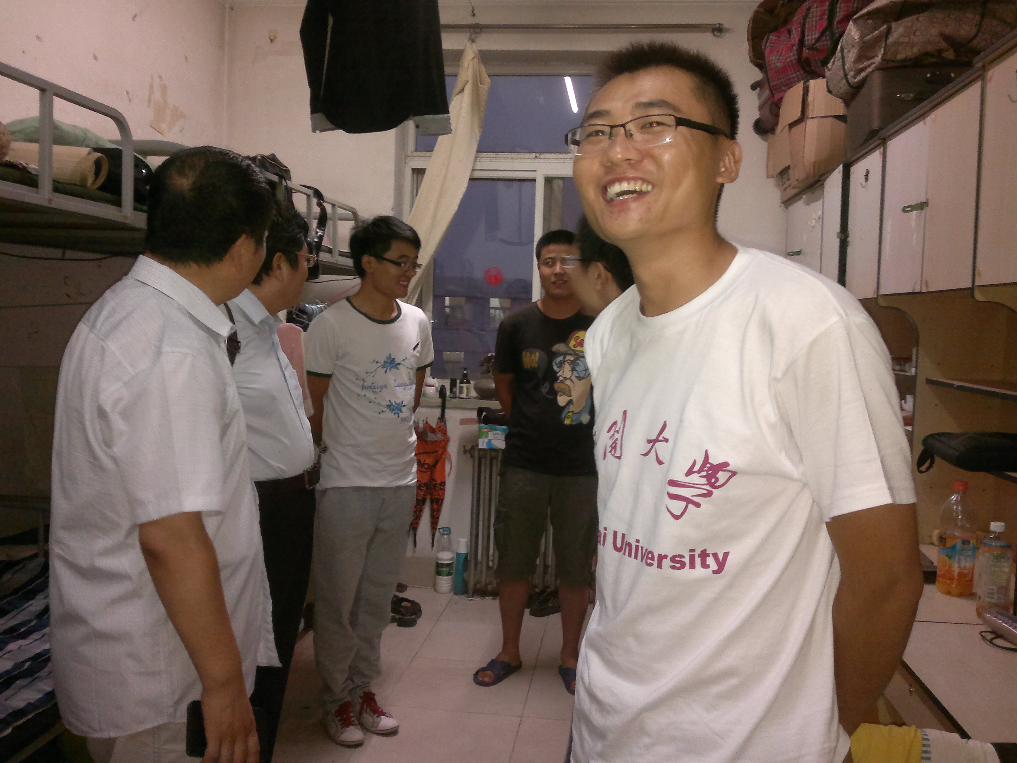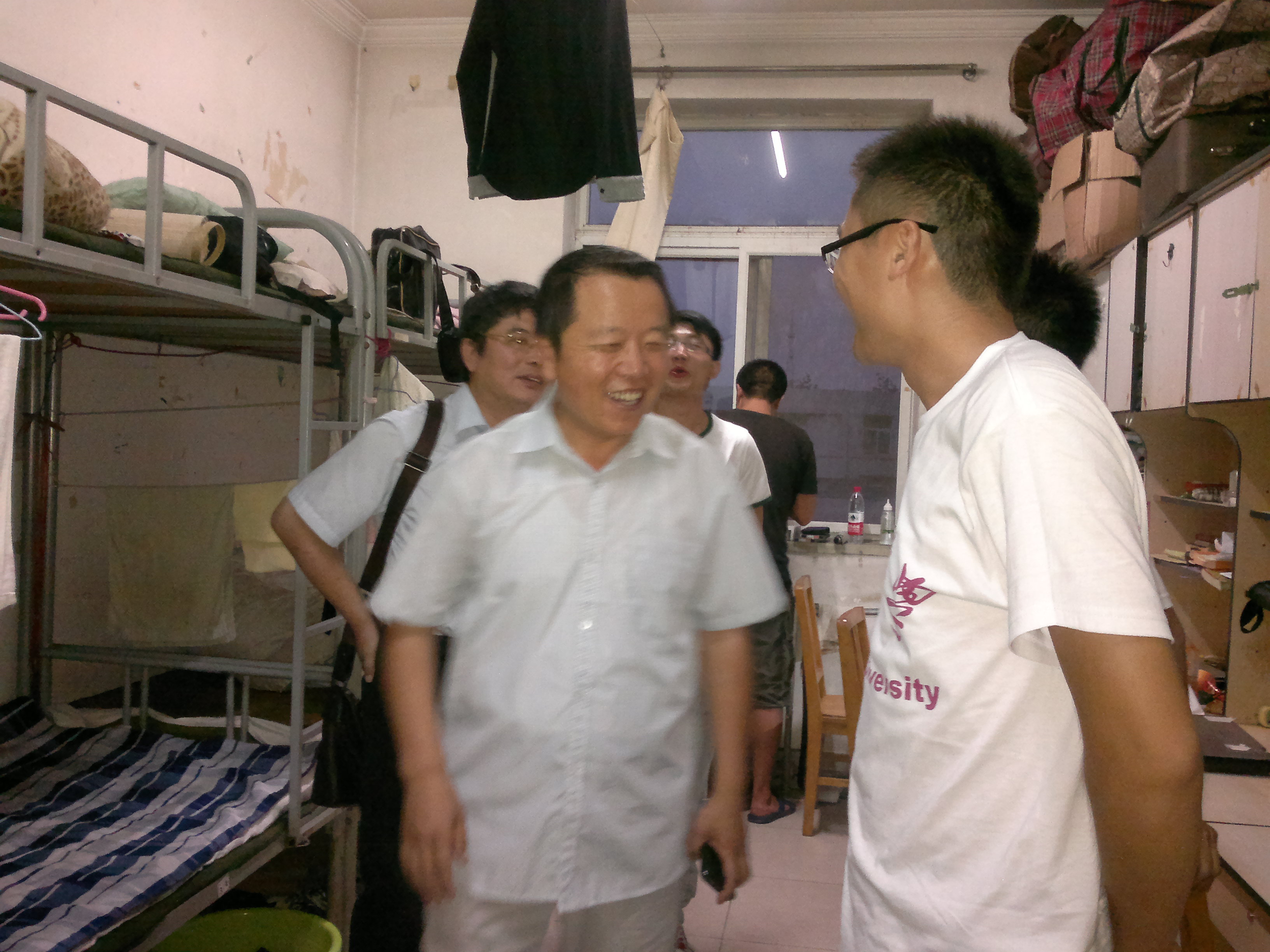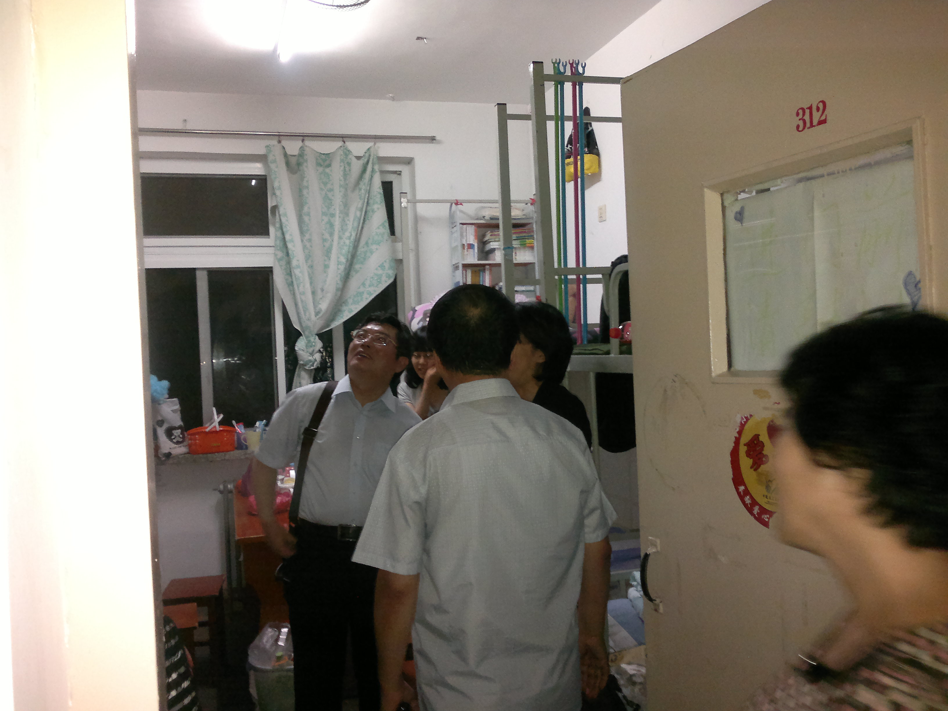 2013年9月8日晚6点半,每日大赛 党政领导班子及相关负责老师,前往学生宿舍看望2013级本科及硕士新生,并带去亲切的慰问。各位领导与老师十分关心新生是否适应新的环境,通过与新生的交流,深入了解了新生的学习及生活环境,并鼓励他们认真学习、积极奋进。同时,各位领导与老师还提前带去了中秋的问候,让这些异地求学的新生们倍感温暖。