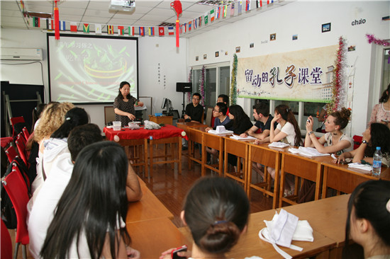 为来自各国的留学生们精心准备了一次“文化体验课”——对于我们最熟悉不过的粽子,留学生们显得异常兴奋。 “听说今天能吃粽子,我一下课就赶了过来!我要试一试!”来自意大利的金佳告诉记者。 粽子好吃,吃到嘴却没那么容易,留学生们需要“自己动手,丰衣足食”。以前从未吃过粽子的他们面对江米、苇叶、大红枣,显得手足无措。幸好专门聘请的李艳红老师在家就是包粽子的一把好手,经过李老师现场传授“秘诀”,并手把手地亲自“教导”,在场的每一个人都包出了像模像样的粽子。 来自多哥的阿凡说,“我已经学会啦,等我回到我的祖国,我会教我的家人包粽子!” 在煮粽子的过程中,现场伴着民歌《好一朵美丽的茉莉花》,向留学生们播放了短片介绍了中国传统节日端午节的来历。  端午节定在农历的五月初五,在这一天人们会通过赛龙舟、插艾草、包粽子等一系列活动方式来纪念中国战国时期伟大诗人屈原。还有挂菖蒲,熏艾草,喝雄黄酒等,则有驱邪避疫的寓意,保佑家人、民族永远平安。端午节现在是中国的法定节假日之一,并列入世界非物质文化遗产名录。 香甜的粽子终于吃到了口。“这简直太棒了!”来自哥伦比亚的安杰娜说,“中国的节日总是又好吃又好玩,我还记得去年刚来中国的时候我吃了月饼,现在又吃到了粽子,最关键的是,这是我自己包的粽子!真想带回去给我的妈妈!”安杰娜还和自己亲手包的粽子合了张影,准备寄给家人。她说在中国的生活非常快乐,中国的人民非常热情友好。 韩国留学生李东建一边吃着粽子一边说,“在韩国也有端午节,但并不是很流行,但是没有假期,没有庆祝活动,也跟伟大的人物无关。我还是更喜欢中国的端午节。” |