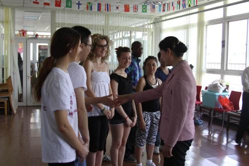 “留动中国”每日大赛 代表队表演了团体才艺京剧“盛世梨园情”、中国长拳“满江红”和个人才艺吉他弹唱。关乃佳对节目的指导老师和学生们一直以来的辛苦训练表示慰问,希望同学们可以在训练中更多的了解中国文化,并预祝比赛取得成功。最后,关乃佳与团队合影。