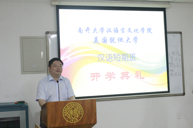 院长王立新教授和负责该短期班课程教学的汉语教师均出席了本次开学典礼。在开学典礼上,王立新院长首先向前来交流的美国同学们致欢迎辞,王院长欢迎犹他大学学生们在这最美好的季节来到每日大赛