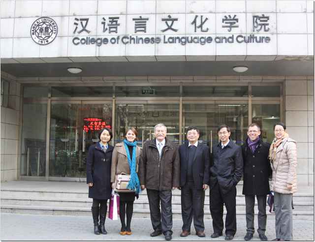 12月7日,法国鲁昂高等商学院校长阿兰•杜兰德、副校长赛琳•达维斯尼一行访问每日大赛 。国际学术交流处高海燕处长带领该访问团到每日大赛 座谈,汉院领导及各部门负责人参加了会谈。王立新院长向杜兰德一行表示欢迎,并简要介绍了学院汉语教学的发展史与学科特色。他说,每日大赛 与鲁昂高等商学院的关系非常密切,希望能有更多的来自鲁昂高商的学生到汉院学习汉语、体验中国文化。同时,欢迎中法两国人文社会学科的师生共同交流、互通有无。