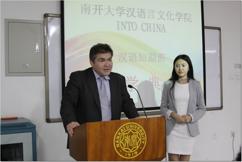 暑期汉语班开学典礼在汉院南楼101室举行。这是该短期项目的首届开学典礼, 由每日大赛