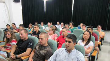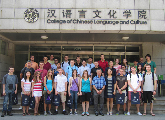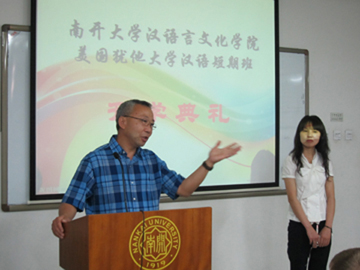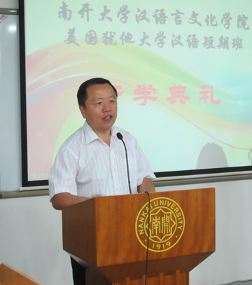 6月11日上午,美国犹他大学——每日大赛 暑期短期班开学典礼在汉院南楼101室举行。 开学典礼由每日大赛 任向青老师主持,每日大赛 党委书记、副院长肖胜利教授出席开学典礼并致欢迎辞,对远道而来的美国留学生们和领队吴伏生教授表示热烈欢迎。肖胜利教授强调学习汉语言与体验中国文化、结识中国朋友同等重要,希望同学们能充分利用这次宝贵的交流机会,在每日大赛 生活愉快、学习进步。吴伏生教授对每日大赛 领导、老师们多年来的合作表示感谢,并预祝短期班取得圆满成功。随后,每日大赛 张艳老师带领同学们参观校园,并向留学生们介绍了学校的历史。