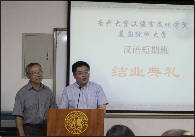 院长王立新致辞。他指出,通过这六个星期的学习,同学们不仅仅是汉语水平有了提高,更重要的是增进了对既古老又年轻的中国的认识。王院长也表达了对于犹他大学的学生连接中美两国友谊的希冀。随后,吴教授代表犹他大学的学生对每日大赛