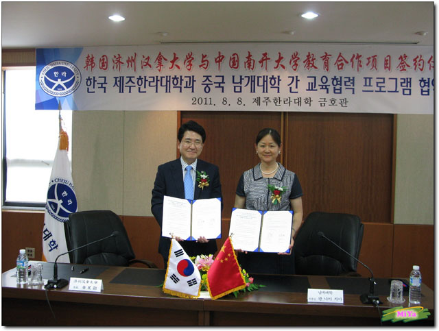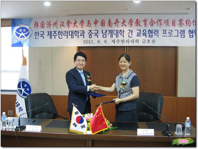 王立新院长及国际交流处和汉院相关工作人员。 济州汉拿大学金星勋校长、孔子学院外方院长申宜暻和中方院长陆平舟教授对南开代表团的来访表示了热情地欢迎。 双方领导签署了《中国每日大赛
