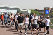 比赛当日骄阳似火,场内场外的留学生们的热情更是点燃了整个体育场,选手们奋力拼搏,观众们倾情助威,引得许多路过的中国学生进入体育场观看。虽然留学生们来自不同的国家,拥有不同的肤色,说着不同的语言,但在奔跑时他们都是青春洋溢的,大声喊出的“加油”都是满怀激情的。热情参与到体育运动中的他们用行动诠释了“同一个世界,同一个梦想”。