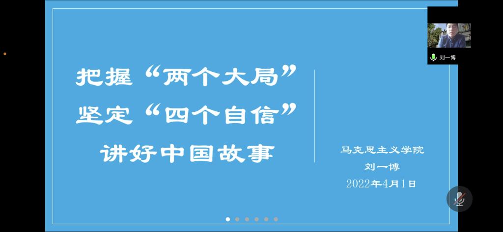 刘一博分别从把握“两个大局”、坚定“四个自信”和讲好中国故事三个角度,说明中国和社会主义互为例证,表明走中国特色社会主义道路是中国人民的历史选择,是实现中国梦的必由之路。刘一博讲到:中国作为百年未有之大变局之最大变量,在实现中华民族伟大复兴的战略全局任务中已经向前迈进一大步,中国没有辜负社会主义。2021年十九届六中全会宣布中国如期打赢脱贫攻坚战,全面建成小康社会、实现第一个百年奋斗目标,开启了全面建设社会主义现代化国家的新征程。