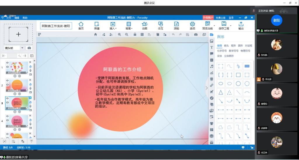 讲座下半场的主题为海外汉语教学工作经验分享。曾赴阿联酋担任汉语教师的2019届毕业生谢阳介绍了海外汉语教师的工作内容和生活情况,分享了在海外工作的体会和工作中要注意的事项,并且提醒同学们如果想选择海外就业需要更为理性地规划未来。
