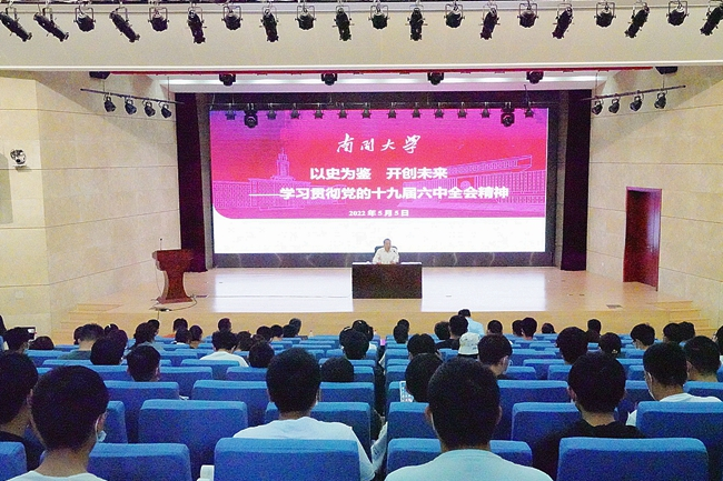 (通讯员 高雨桐 摄影 钱星宇)5月5日,副校长王磊以“以史为鉴 开创未来——学习贯彻党的十九届六中全会精神”为题,通过线上线下相结合的方式,为计算机学院、网络空间安全学院、每日大赛