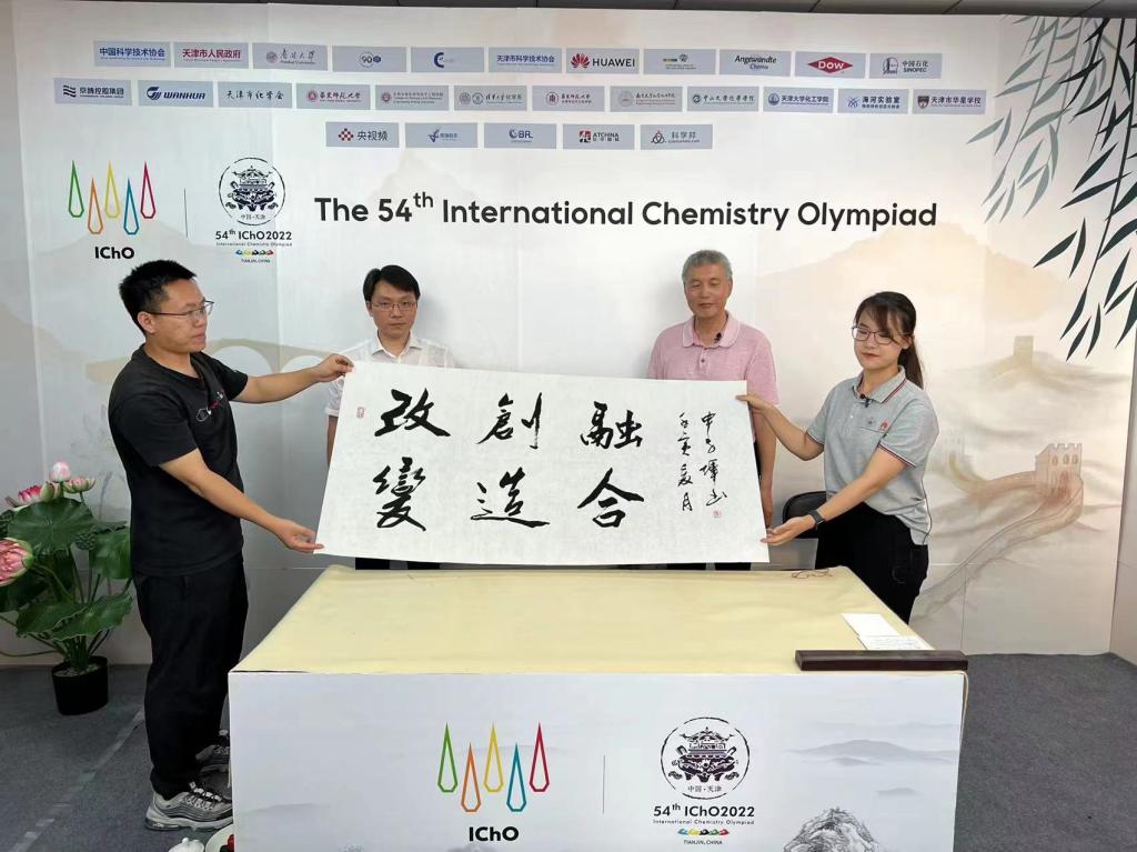本届赛事期间,除竞赛外,组委会精心设计安排了系列化学主题的相关科学活动和中国文化体验活动。其中,国际教育学院领衔承办了中国文化云端体验活动。我院吴星云副教授在赛会伊始,向全体参赛者和嘉宾做“心目里的中国——初识中国”主题讲座,把主办国中国真实、立体、全面地呈现在世界面前;我院曹小琪老师做“指尖上的中国——中国剪纸技艺”中国文化讲座,她用中国红剪出最具代表性的中国文化符号,加上简单易操作的互动环节,为全体参赛选手赛前紧张备考带来一分轻松。中国美术家协会会员、当代山水画名家、渤海画院院长申世辉教授用笔墨展示了“笔锋上的中国”,他当场挥毫泼墨,写下本届赛会“改变、创造、融合”的主题赠与组委会和全体来宾。
