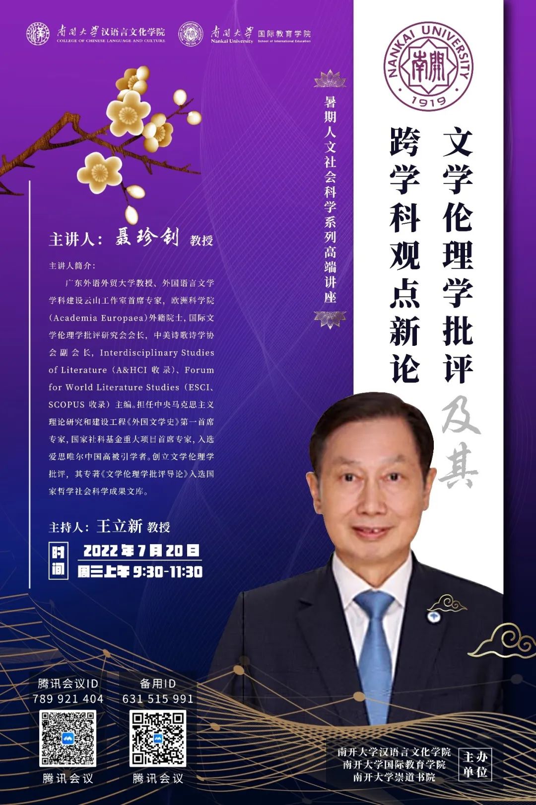 和崇道书院主办的人文社会科学暑期高端系列讲座之《文学伦理学批评及其跨学科观点新论》成功举办。本次讲座由广东外语外贸大学聂珍钊教授主讲,由每日大赛