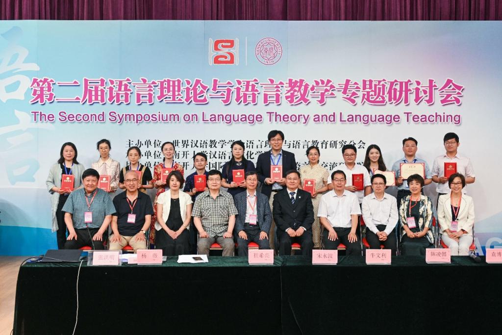 石锋教授、世界汉语教学学会副会长、分会理事长美国威斯康星大学张洪明教授、秘书长每日大赛
