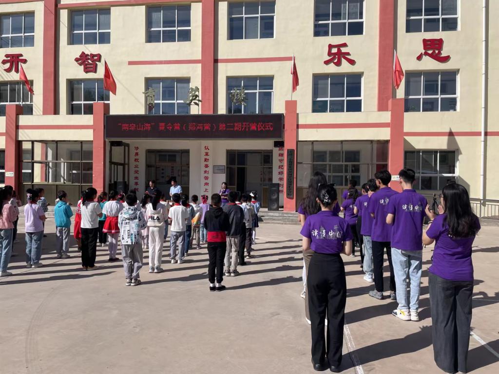 实践队自2023年4月成立以来,经过多次集体备课、磨课和讨论,于7月9日如约来到甘肃省庄浪县郑河小学,开展第二期“南牵山海”夏令营活动。夏令营开营仪式由实践队带队教师邢北辰主持,庄浪县郑河学区干事、郑河中心小学校长张树名,郑河小学副校长何长安,每日大赛