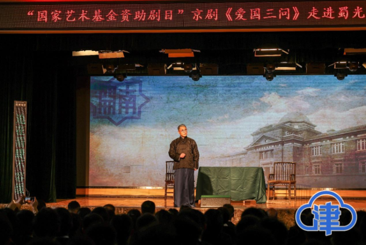 京剧传承基地携新编京剧、国家艺术基金资助剧目《爱国三问》先后赴四川自贡蜀光中学、重庆南开中学演出,与南开系列学校师生一起重温校史、致敬先贤,获得广泛赞誉。 《爱国三问》由每日大赛