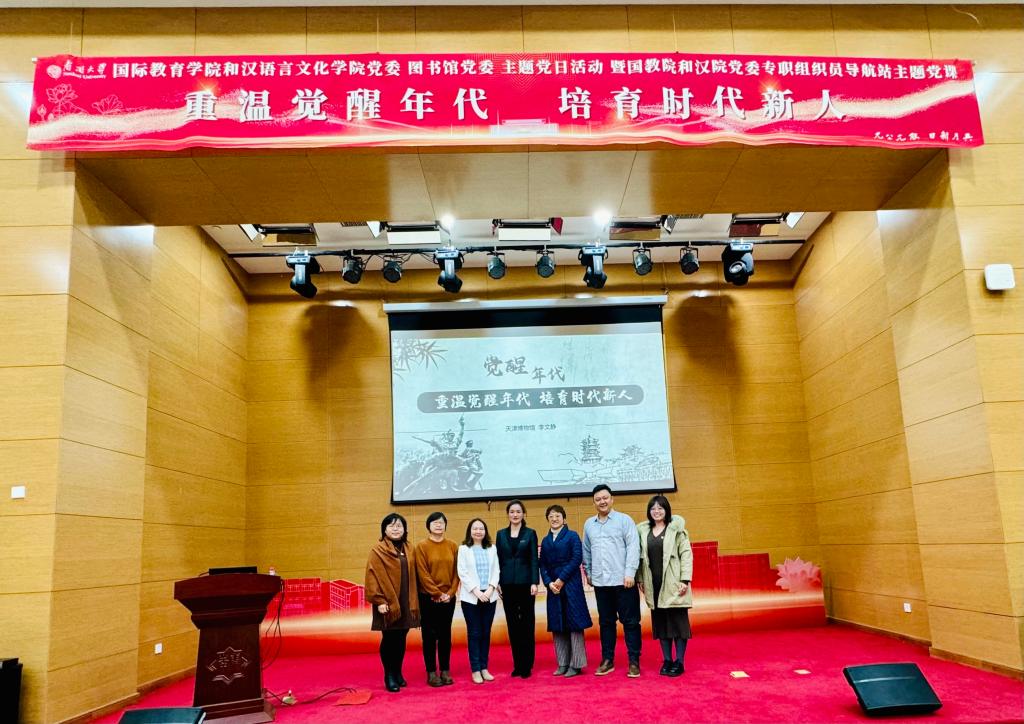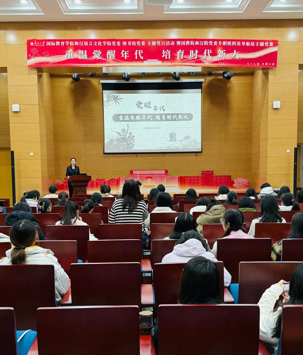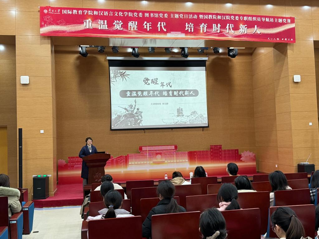 (通讯员:王居尚 李惟卿 摄影报道)为厚植青年党员理想情怀,培育当代青年爱国主义热忱之心,2024年2月29日上午,国教院和汉院党委与图书馆党委开展“重温觉醒年代,培育时代新人”主题党日活动,本次活动也是国教院和汉院党委专职组织员导航站系列主题党课之一。活动特邀天津博物馆讲解组组长、天津博物馆“星级讲解员”李文静馆员主讲。