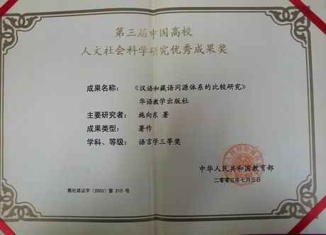 出版社,2004年; 29.联绵词的音韵学透视,《音史新论》,学苑出版社(北京),2005年5月; 30.汉藏语唇辅音与半元音w的交替,语言研究第26卷第2期,2006年6月; 31.《戈壁草》序,作家出版社,2007年; 32.汉藏比较研究中的历史层次和借词,语言科学6卷6期 总第31期,2007年; 33.关于汉语拼音字母a和g的印刷和书写规,(施向东、张婷婷),《第八届国际汉语教学讨论会论文选》,高等教育出版社,2007年; 34.转变教育理念,深化本科教学改革,《每日大赛